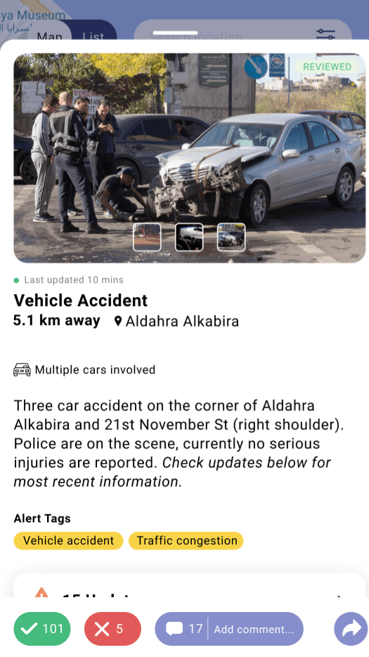 Amir needs a quick and efficient way to report any potential threats that will be shared, to keep his community notified and allow them to avoid and keep safe.
