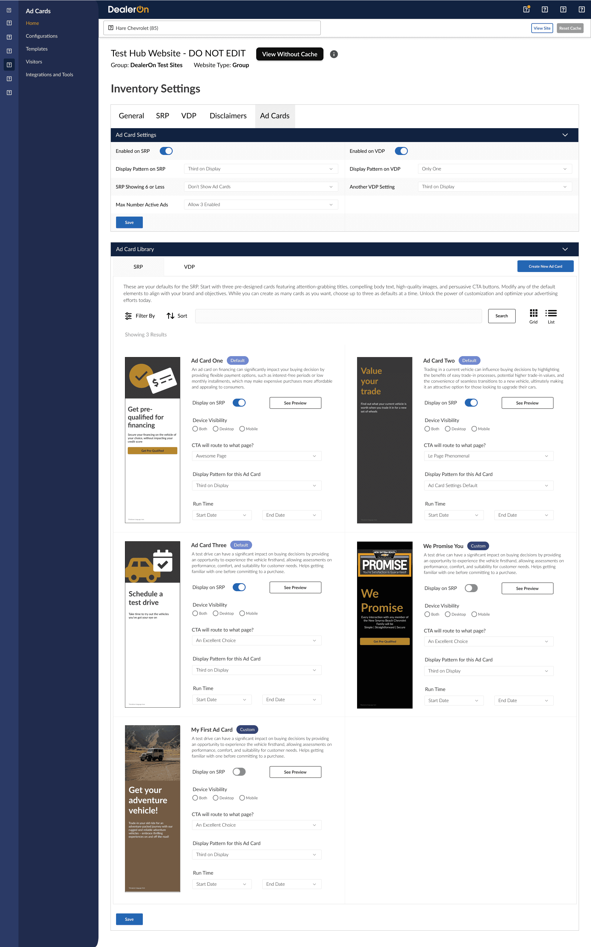 Re-do Ad Cards Settings Page in CMS.